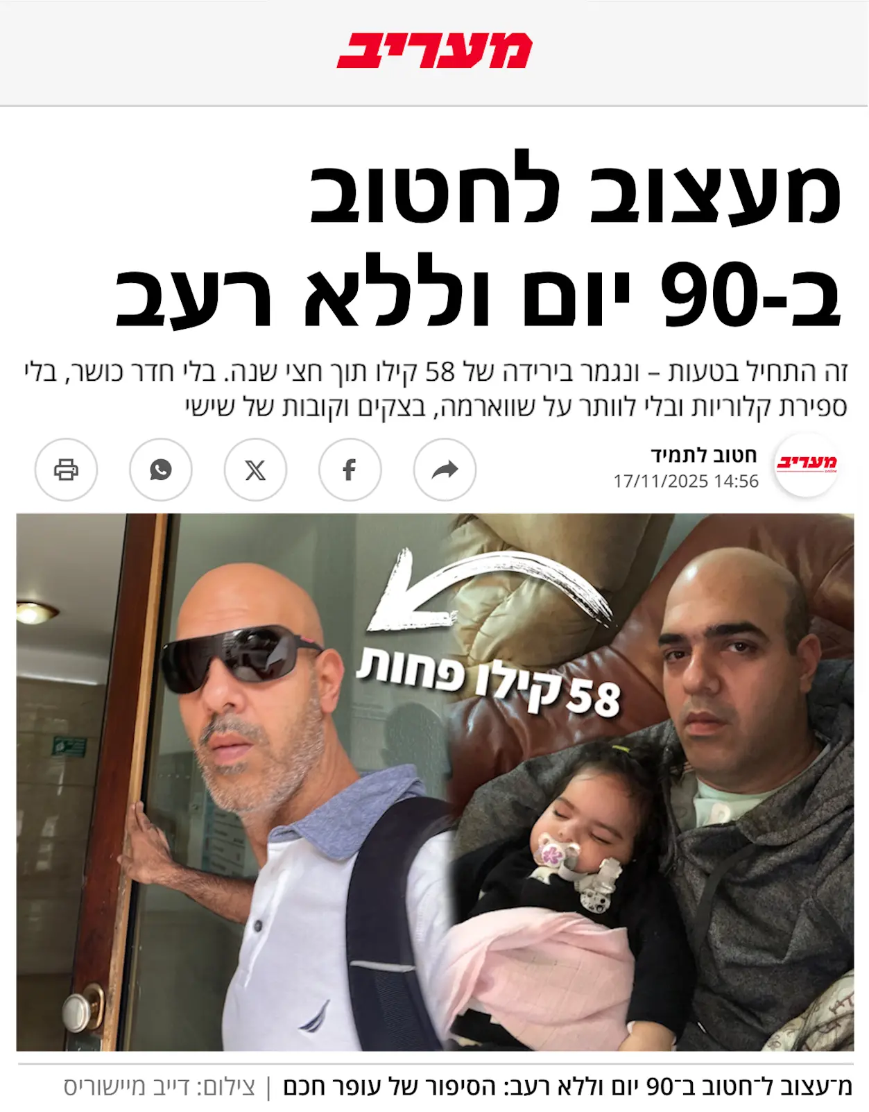 היום אני שוקל 75, ירדתי 58 קילו בחצי שנה!